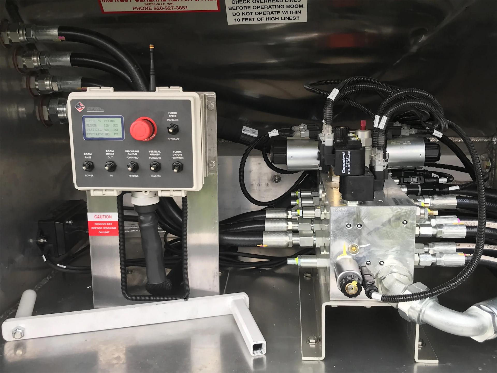 - Remote control with electric-solenoid manifold valve + stainless steel hydraulic tubes